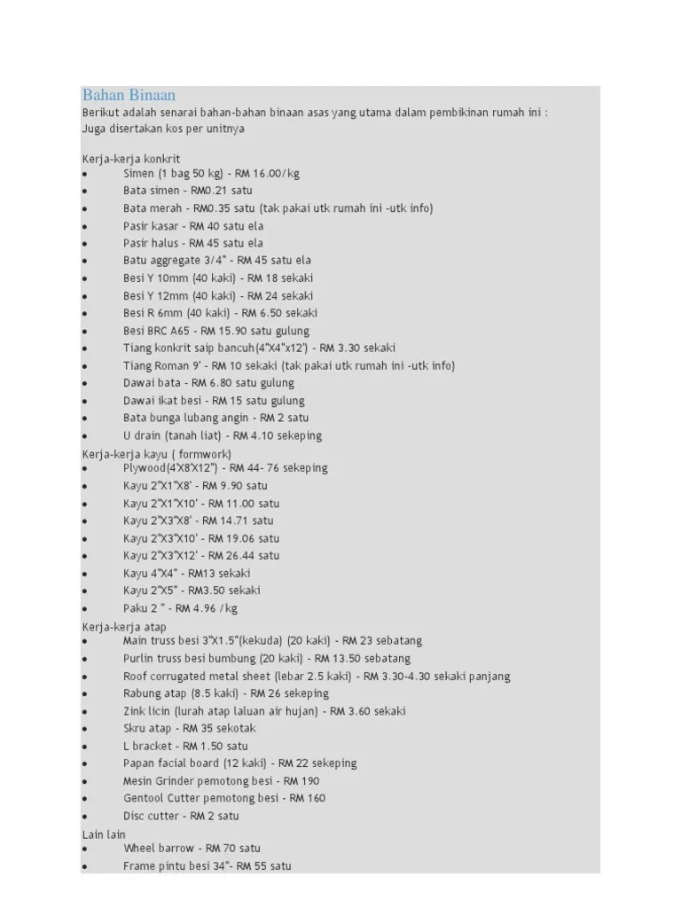 Harga batu cincin akik lengkap. Sebanyak 10 peratus pada tahun 2007 (n. Savesave daftar harga bahan bangunan november 2016.pdf for later. Kira bahan binaan rumah apk we provide on this page is original, direct fetch from google store. Berikut adalah contoh bajet harga bahan binaan untuk projek renovate ubahsuai atau buat rumah di malaysia dalam rm ringgit. Salam, boleh beri saya nama syarikat syarikat yang bekal bahan binaan tak? Perlu diingat, bahwa harga bisa berbeda sesuai dengan harga satuan bahan bangunan di tiap daerah. 1 januari 2013 ( sedang dalam proses pengumpulan data ). • software pengiraan bahan binaan. • terbahagi kepada 2 jenis kayu iaitu kayu jati dan kayu ulin. Buzz tabung haji bukan bahan politik murahan. We supply wide range & variety of building materials. Daftar harga bahan bangunan terkini sajian semua tersaji dalam update daftar harga bahan bangunan di depan anda.