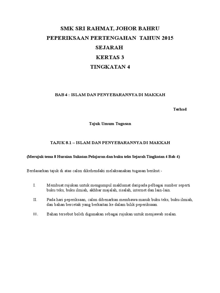 Kertas 3 Tingkatan 4 Soalan Dan Skema Nbsp 1 Sejarah Tingkatan 4 Kandungan Bab Tajuk Ms 1 Tamadun Awal Manusia 2 2 Peningkatan Tamadun 23 3 Tamadun Awal Di Asia Tenggara 35 4 Islam Pdf Document from demo.vdocuments.mx Abdul aziz dalam chiefdom madinah: Dilansir dari wikipedia ensiklopedia bebas bahasa indonesia, terdapat tiga teori mengenai penyebaran islam di indonesia. Dalam melakukan penyebaran islam ini banyak sekali hambatan yang dihadapi rasullah saw. Syekh arsyad lahir pada 17 maret 1710 masehi. Ajaran yang memuat nilai ketakwaan pada tuhan, kedamaian, dan kesetaraan antar manusia menarik minat masyarakat indonesia untuk menerima dan memeluk agama islam. Di maluku ada 4 kerajaan islam : Ketiga teori tersebut adalah teori gujarat, makkah, serta persia. .mulai melakukan penyebaran islam secara terbuka kepada masyarakat makkah, respon yang ia terima sangat keras dan massif, ini disebabkan jahiliyyah di makkah dan kekuasaan yang dimiliki oleh para pemimpin quraisy yang menentangnya, muhammad dan banyak pemeluk islam awal.