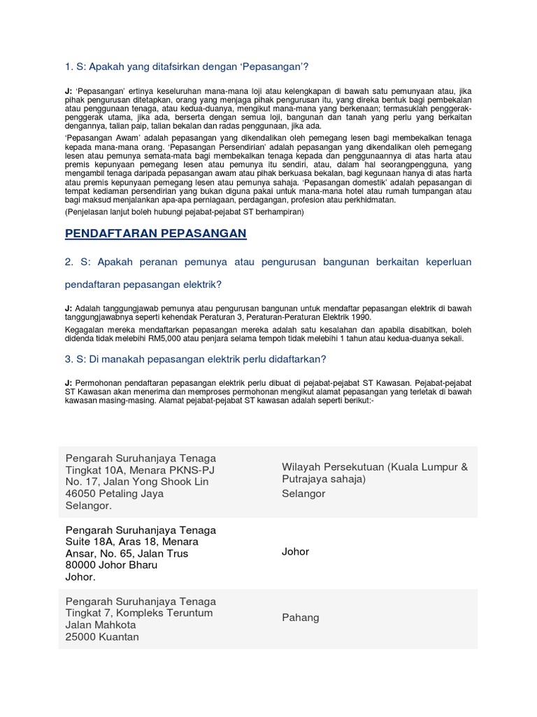 Require generators to be certified by the energy commission of malaysia, also known as suruhanjaya tenaga (st). 25 oktober 2016 lepas negara dikejutkan dengan kebakaran hospital sultanah aminah, johor bahru dan enam orang dilaporkan meninggal dunia dalam kejadian itu. In the traditional regulation approach, the government entity has a direct role in the investment of electricity supply infrastructure. Suruhanjaya tenaga (st) telah ditubuhkan di bawah akta suruhanjaya tenaga 2001 pada 1 mei 2001 dan mula beroperasi sepenuhnya pada 2 pejabat kawasan suruhanjaya tenaga suite 18a, aras 18, menara ansar jalan trus 80000 johor bahru, johor tel : Tidak pernah terlambat untuk menempah perjalanan.